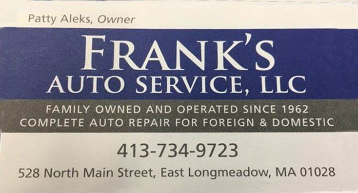 Frank's Auto Service has been operated by Patty Aleks for over 40 years. Patti is a business degree graduate and is a grandmother of 2 girls. She learned the business from her father, Frank.